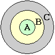 | Il bersaglio rotondo raffigurato a lato nelle gare di tiro viene colpito nella zona A con probabilità 0.14, nella zona B con probabilità 0.22, nella zona C con probabilità 0.19. Qual è la probabilità che un tiro, in una generica gara, non colpisca il bersaglio? | ![]() |