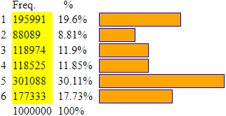 dopo 100 mila prove. Il "5" è l'uscita più frequente. Quindi ci si aspetta che, essendo la