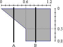 nel caso B effettua un taglio lungo 0.8). Il taglio viene effettuato in una posizione casuale, che si distribuisce uniformemente lungo tale lato; ad esempio, riferendosi al sistema di coordinate raffigurato, la probabilità che il taglio cada tra la posizione 0.2 e la posizione 0.4 è uguale alla probabilità che cada tra la posizione 0.9 e la posizione 1.1. |