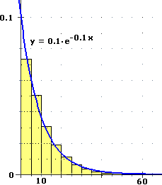 i tempi cadono nell'intervallo di base; l'area complessiva dell'istogramma è 100% = 1.