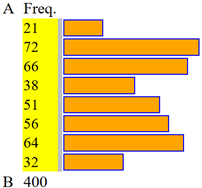 25*21, 35*72, 45*66, 55*38, 65*51, 75*56, 85*64, 95*32 Tenendo conto della numerosità dei dati e della forma dell'istogramma possiamo supporre che non vi sia conformiltà con la distribuzione uniforme. Facciamo, comunque, il calcolo di χ² (vedi). Frequenze osservate: 21, 72, 66, 38, 51, 56, 64, 32 |