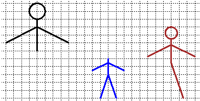 Completa la figura seguente in modo da ottenere tre omini con la stessa forma. Spiega come hai fatto.