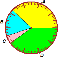 Nel diagramma a torta qui a sinistra A, B e C rappresentano il peso dell'acqua presente mediamente nel corpo di un uomo, nelle cellule (A), nello spazio "intercellulare", cioč tra una cellula e l'altra (B), e nel sangue (C). D rappresenta il peso della parte del corpo umano che non contiene acqua. Quanti chilogrammi di un uomo di 70 kg sono costituiti da acqua? Quanti di questi chilogrammi d'acqua sono presenti nel sangue? |