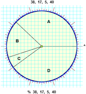Nel diagramma a torta qui a sinistra A, B e C rappresentano il peso dell'acqua presente mediamente nel corpo di un uomo, nelle cellule (A), nello spazio "intercellulare", cioè tra una cellula e l'altra (B), e nel sangue (C). D rappresenta il peso della parte del corpo umano che non contiene acqua. Quanti chilogrammi di un uomo di 70 kg sono costituiti da acqua? Quanti di questi chilogrammi d'acqua sono presenti nel sangue? |
