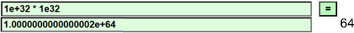 Invece di 1e64 ottengo 1.0000000000000002e64 (ossia 10000000000000002000000000000000000000000000000000000000000000000) in quanto i calcoli sono effettuati in modo approssimato. Proseguendo: