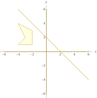 polygon (-6,0),(6,0),(0,0),(0,6),(0,-6),(0,0); polygon (-4,1),(-2,1),(-2,3),(-4,4),(-3,2); polygon (-4,6),(6,-4)![]() | |||