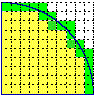 I valori precedenti sono stati ottenuti col seguente programma, redatto in JavaScript (vedi), nel quale per contare i quadretti contenuti si è valutato per ciascuno di essi se il vertice più lontano dista al più 1 da (0,0), per contare anche quelli che stanno sul bordo si è valutato se il vertice più vicino dista meno di 1 da (0,0).