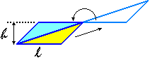 | Consideriamo un parallelogramma (quadrangolo con lati a due a due paralleli) come composto da tante striscioline disposte parallelamente a uno dei lati, ad es. come se fosse realizzato con tante cannucce da bibita. Se facciamo scorrere le striscioline in modo che le loro estremità rimangano allineate, nel corso del movimento il parallelogramma cambia forma ma mantiene (per la proprietà additiva) la stessa area (la somma delle aree di tutte le striscioline). Indichiamo con l la lunghezza del lato che rimane fisso e con h la distanza tra la retta a cui esso appartiene e il lato opposto. Durante il movimento h non varia. | ![]() |