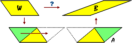 Nel caso dei parallelogrammi W e B seguenti non posso procedere con una sola traslazione di un triangolo in quanto hanno l'inclinazione dei lati non orizzontali è molto diversa. Mediante un numero finito di traslazioni simili alla W