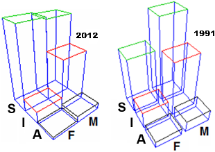 34%, 22.1%, 2.6% S I A maschi | ![]() 34.5%, 5.7%, 1.1% S I A femmine |