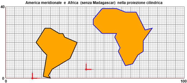 Verifichiamo la cosa concretamente (si potrebbe anche darne una dimostrazione, ma questa sarebbe affrontabile solo alla fine delle scuole superiori). Consideriamo l'America del Sud e l'Africa, escludendo per semplicità l'isola di Madagacscar.
