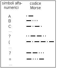 alfabeto Morse la sua traduzione con gli usuali caratteri di stampa.