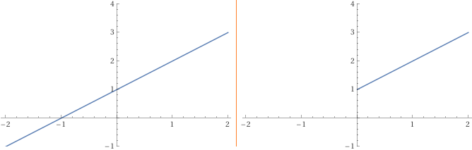 plot Piecewise[ { {x-1+sqrt(4*x)/sqrt(x), x>=0}, {1e5, x<0} } ], x in [-2,2], y in [-1,4] fornisce invece il