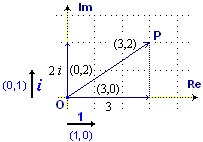 Per semplificare la descrizione sia dei punti che delle trasformazioni geometriche (evitando l'uso delle parentesi e delle virgole) e, come vedremo, per trovare un modo semplice per descrivere anche le rotazioni di ampiezza diversa rispetto ai multipli di 90°, si introduce il seguente "trucco", che descriviamo riferendoci alla figura sotto a destra: