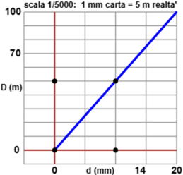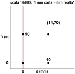 consideriamo due valori (d,D) da segnare sui due assi vicini a 14 e 70 ma più "comodi", come 10 e 50 [vedi la terza figura],