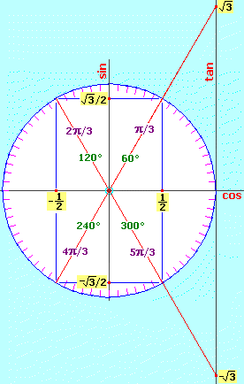 Queste figure riportano alcuni valori di seno (sull'asse verticale), coseno (sull'asse orizzontale)