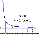 Nel caso della distanza tra l'asse x e il ramo dell'iperbole y = 1/x+1 con le ascisse positive, se prendo un punto che sta sull'iperbole e man mano mi sposto verso destra, la sua distanza dall'asse x tende ad 1. Infatti, su questo ramo di iperbole y varia da ∞ a 1, ovvero l'insieme degli output di Possimo dire che la retta y=1 è un asintoto della nostra curva, ossia che è una retta tale che la distanza tra un punto su di essa e la curva tende a 0 all'avanzare del punto lungo una delle due direzioni della retta (sull'espressione intuitiva "tende a 0" si torna alla voce limiti). |
