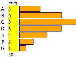 ![]() | Diagrammi a barre e istogrammi con basi uguali o diverse si possono realizzare facilmente con degli script: vedi. In quelli sottostanti il pallino giallo rappresenta il valor medio (59, 75, 81). | |