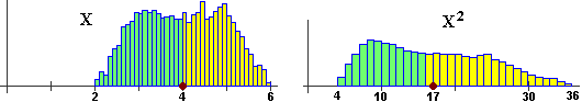 Ad esempio, dato un insieme di quadrati di vari formati, X potrebbe essere la distribuzione delle lunghezze dei loro lati e X2 quella delle loro aree.