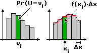 Se la variabile casuale U a valori nell'intervallo I ha istogrammi sperimentali che (all'aumentare delle prove e al ridurre l'ampiezza degli intervallini in cui viene ripartito I) hanno contorno superiore che tende a condondersi col grafico di una funzione f con dominio I, se f è integrabile su I posso porre, per ogni a e b in I: