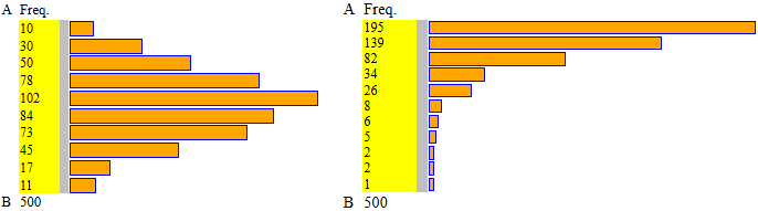 La ditta Sifanstat sa come approssimare gli istogrammi precedenti con delle curve che racchiudono con l'asse x un'area ampia 1, come nel caso del quadrato di base (0,1) e altezza 1 e il triangolo di base (0,2) e altezza 1 considerati sopra: