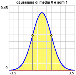scarto quadratico medio (o deviazione standard). Sotto a sinistra è rappresentato il grafico della gaussiana di media 0 e sqm 1.