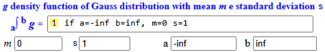 | a∫b g = | 1 | if a=-inf b=inf, | m=0 s=1 |