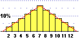 ![]() | i dati: 0*0.00107, 1*0.00974, 2*0.04505, 3*0.11674, 4*0.20511, 5*0.24744, 6*0.20414, 7*0.11678, 8*0.04326, 9*0.00953, 10*0.00114 A = -0.5 B = 10.5 11 intervalli media = 4.99325 |