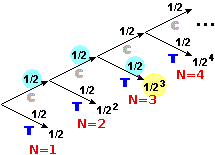 • La probabilità Pr(N=3) che T venga al terzo lancio è (vedi grafo a destra)