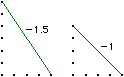| Approssimo il grafico con un numero doppio di segmenti: quelli che congiungono i suoi punti di ascissa 2, 1.5, 1, 0.5, 0, 0.5, 1. 1.5 e 2. È facile calcolare la pendenza di questi segmenti. A destra è rappresentata graficamente la pendenza di questo nuovo grafico a tratti rettilinei con cui ho approssimato il grafico della funzione: la pendenza passa da 2.5 a 1.5, a 0.5,