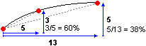 | Ma non possiamo esprimerla come rapporto tra variazione del dislivello e variazione orizzontale in quanto all'avanzare orizzontalmente la strada si incurva, per cui il rapporto dipende dalla lunghezza del tratto che considero: vedi figura a lato; più il tratto è piccolo più posso ritenere significativa la percentuale che ottengo, ma quanto devo prenderlo piccolo? | ![]() |