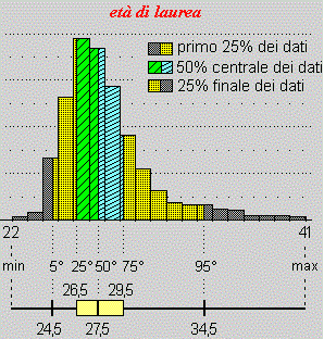 Vedi QUI ("istogramma" ed il suo "help") come realizzare facilmente l'istogramma delle età di laurea e il relativo box-plot: