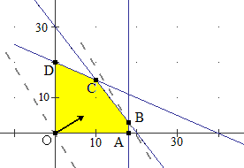 Si ottiene il massimo in (8, 2, 0) con z = 54.