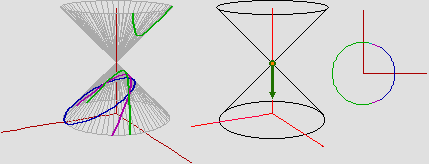 Sotto, a sinistra, una sintesi della animazione: se taglio il cono con un piano, non