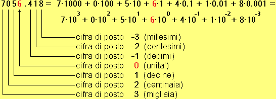impiega le dieci cifre 0, 1, 2, …, 9 ed eventualmente un punto (o una virgola) e il segno