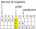 – andando verso sinistra, le cifre di posto maggiore indicano quante volte devono essere prese