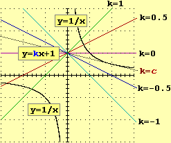 cioè kx+1=1/x, osservando come cambiano le intersezioni tra