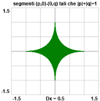 segmenti PQ con P su un asse e Q sull'altro tali che d(O,P)+d(O,Q)=1