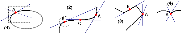 Nel caso dell'ellisse, invero, si potrebbe trasformarla in un cerchio con una trasformazione di scala, tracciare la tangente nel punto A' del cerchio che corrisponde ad A e applicare la trasformazione di scala inversa: la tangente al cerchio viene trasformata nella tangente all'ellisse. Ma nel caso della figura (2) non si può usare questo trucco.