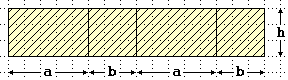 Si vuole calcolare l'area complessiva delle pareti di una stanza da tappezzare; nel calcolo non si tiene conto delle porte e delle finestre (infatti si può risparmiare qualche ritaglio di carta ma non dei tratti interi di rotolo). Sotto è raffigurato lo sviluppo piano delle quattro pareti. Scrivi una formula che consenta di calcolare l'area a partire dalle dimensioni a, b e h effettuando il minor numero possibile di calcoli. Motiva la risposta.