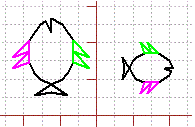 poi ruotando X di 90° attorno al punto evidenziato. A fianco - figura (4) - sono raffigurati due pesci inversamente simili, ovvero tali che uno è ottenibile dall'altro componendo una similitudine con un ribaltamento. | (4) | ![]() |