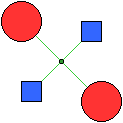 | A: figura con simmetria assiale, rispetto sia alla retta che passa per i centri dei quadrati che a quella che passa per i centri dei cerchi, e simmetria centrale rispetto al punto evidenziato; B: figura con simmetria assiale rispetto ad ogni retta che passa per il punto evidenziato e per i vertici delle punte, e nessuna simmetria centrale; C: figura con una sola simmetria assiale. (le simmetrie centrali sono presenti soprattutto nei fiori, ma sono presenti anche tra gli animali; gran parte degli animali presentano simmetrie assiali, ma non tutti hanno delle simmetrie: vedi) | ||