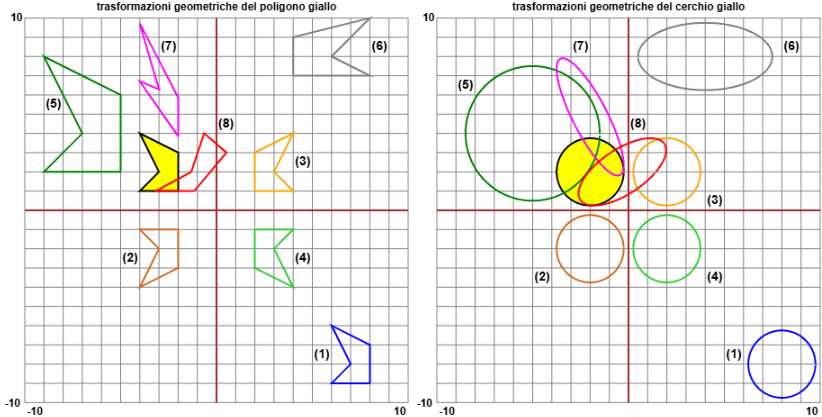 Alcune trasformazioni geometriche della figura colorata di giallo (sinistra