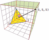 | Vediamo come descrivere il piano che passa per i punti dei tre assi di ascissa 3, di ordinata 3 e di quota 3: | ||