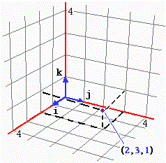 Ecco la rappresenatazione con WolframAlpha del vettore 2i+3j+k e delle sue componenti dirette come gli assi: