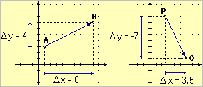 Il cambiamento di posizione che corrisponde al passaggio da un punto A a un punto B può essere descritto indicando la variazione orizzontale xB−xA, che indicheremo anche con Δx, e la variazione verticale yB−yA, che indicheremo anche Δy.
