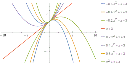 Passano tutte per il punto (0,3) [per x=0, y=3], le forme (tranne il caso a=0) sono tutte uguali [tutte le parabole sono simili tra loro].