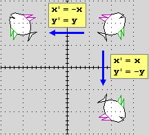 illustrazione 2 (uno è ottenibile dall'altro con una rotazione di 180° attorno all'origine); esse non sono invece uguali al terzo pesce della stessa illustrazione: non sono sovrapponibili ad esso con un movimento piano (occorre un ribaltamento). In genere è questo il modo in cui è usato l'aggettivo "uguale" quando si confrontano figure del piano.