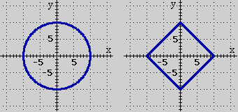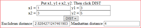 The Euclidean distance and the Manhattan (or "taxicab" or, in Italian, "urbanistica") distance: