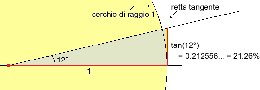 La seguente figura spiega perché si usa l'espressione "tangente di 12°"